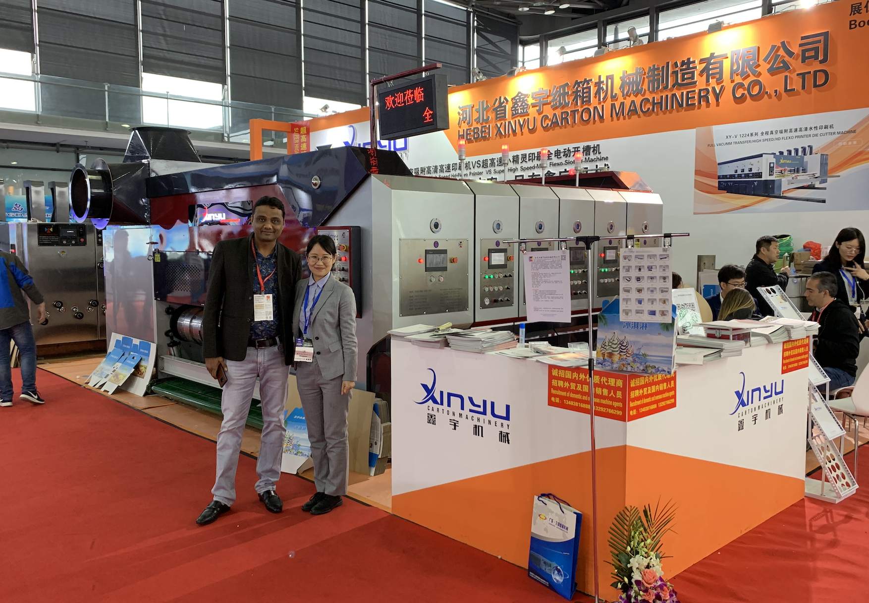 展會于2019年4月在上海·浦東舉辦。同期還舉辦2019中國國際彩盒展、2019中國包裝容器展、2019上海國際軟包展和2019上海國際紙展,五展同期,盛況空前。鑫宇紙箱機(jī)械攜真空吸附機(jī)型以及迷你高速機(jī),在展會上收獲頗多客戶。